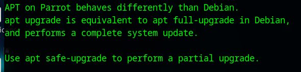 Pour les mises à jour, j’ai découvert que Parrot OS a plusieurs niveaux de mises à jour :