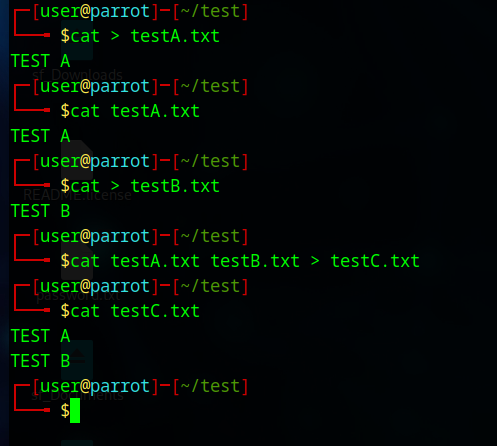 $ cat testA.txt testB.txt > testC.txt