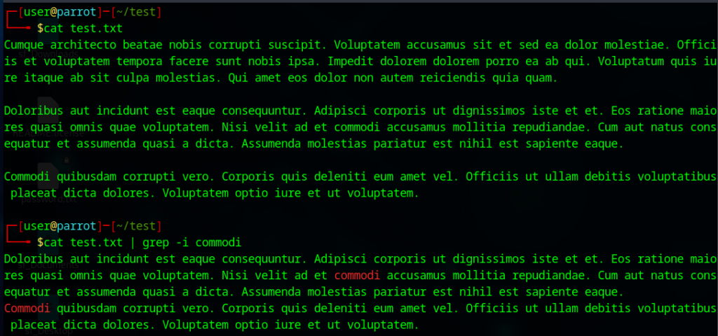 $ cat test.txt | grep -i commodi