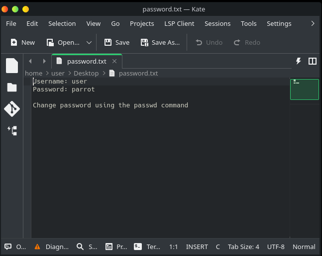 A la différence de Parrot OS 6.4, il y a rien ou quasiment plus rien sur le bureau (desktop pour ceux qui préfèrent le terme anglais).