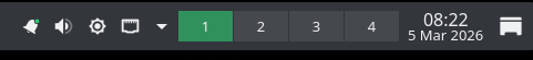 Evidemment, comme il n’y a plus la barre du bas, tous les éléments qui se trouvaient en bas dans la génération précédente de Parrot OS se retrouvent dans la barre du haut ou supprimés.
