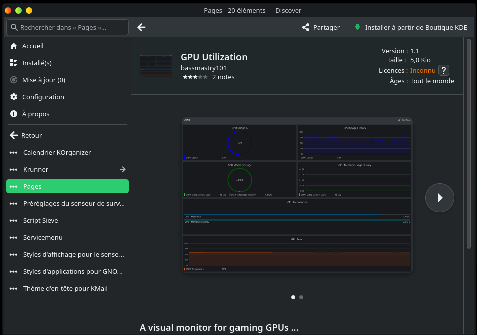 Discover est un logiciel spécifique à KDE pour la recherche, l’installation et la mise à jour de vos paquets. Discover a décidé de s’appeller un « explorateur d’applications ».