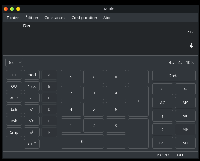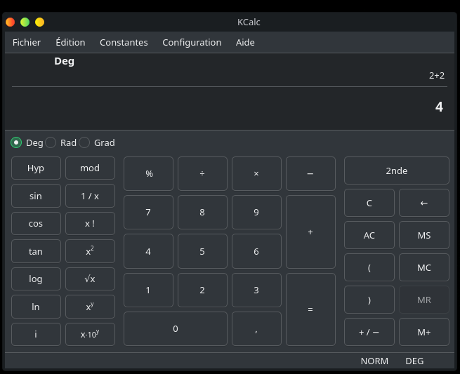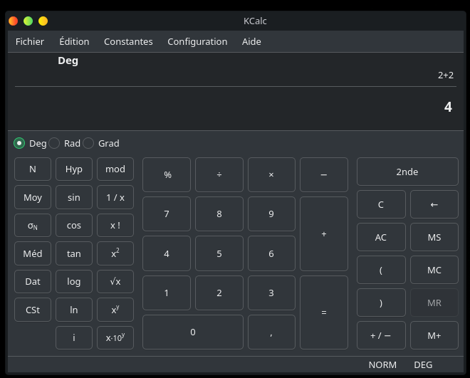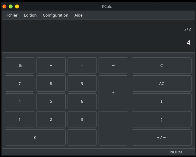 Kcalc est la calculatrice spécifique à KDE. Sur Windows, elle s’appelle tout simplement calculatrice.