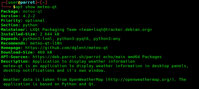 Ce n’est pas le cas chez Parrot OS 7.1 et je fais donc une recherche dans les paquets disponibles.
