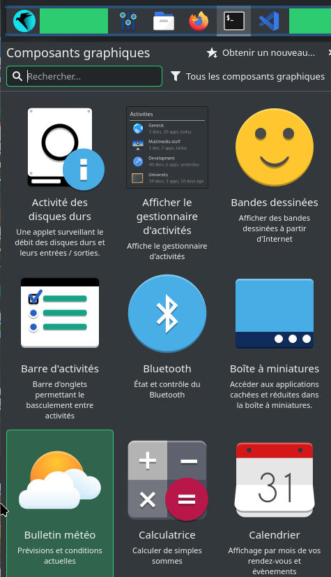 Après avoir installé « kweather », je vais dans l’édition du bureau.
