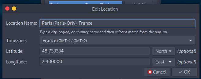 Si ça ne fonctionne pas, c’est qu’Etampes n’est pas dans la liste des villes disponibles. Pour savoir les villes disponibles en France, j’ai donc tapé « France ».