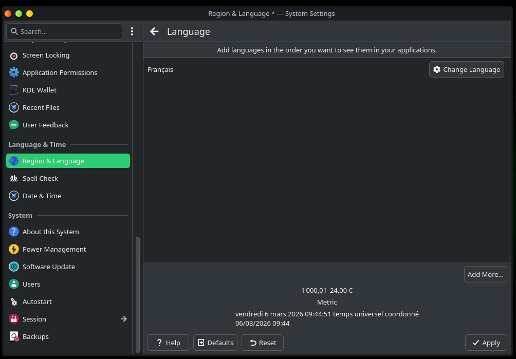 La date est bonne, l’heure s’affiche avec une heure en moins alors que j’ai précisé que je suis en France la partie « Region & Language ».