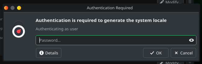 Puis je clique sur « Apply » (pour Appliquer). Il demande le mot de passe de l’utilisateur (attention, c’est toujours en anglais, donc tapez : pqrrot).