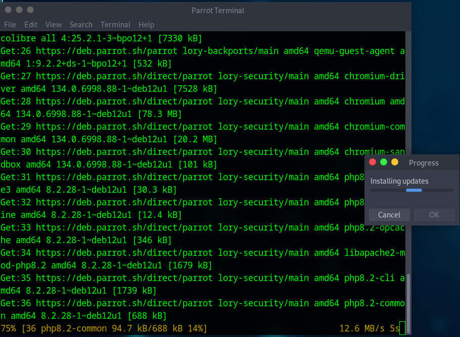 Un élément que j’apprécie avec Parrot, c’est qu’il vous demande à chaque démarrage de votre ordinateur (ou serveur virtuel) si vous désirez vérifier s’il y a des mises à jour dans les paquets.